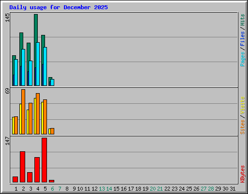 | Day | Hits | Files | Pages | Visits | Sites | KBytes | ||||||